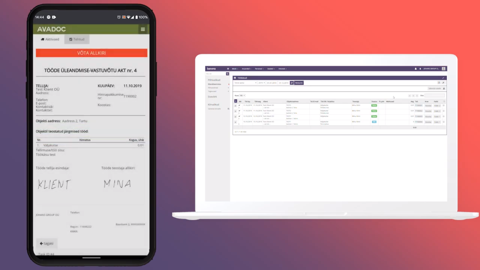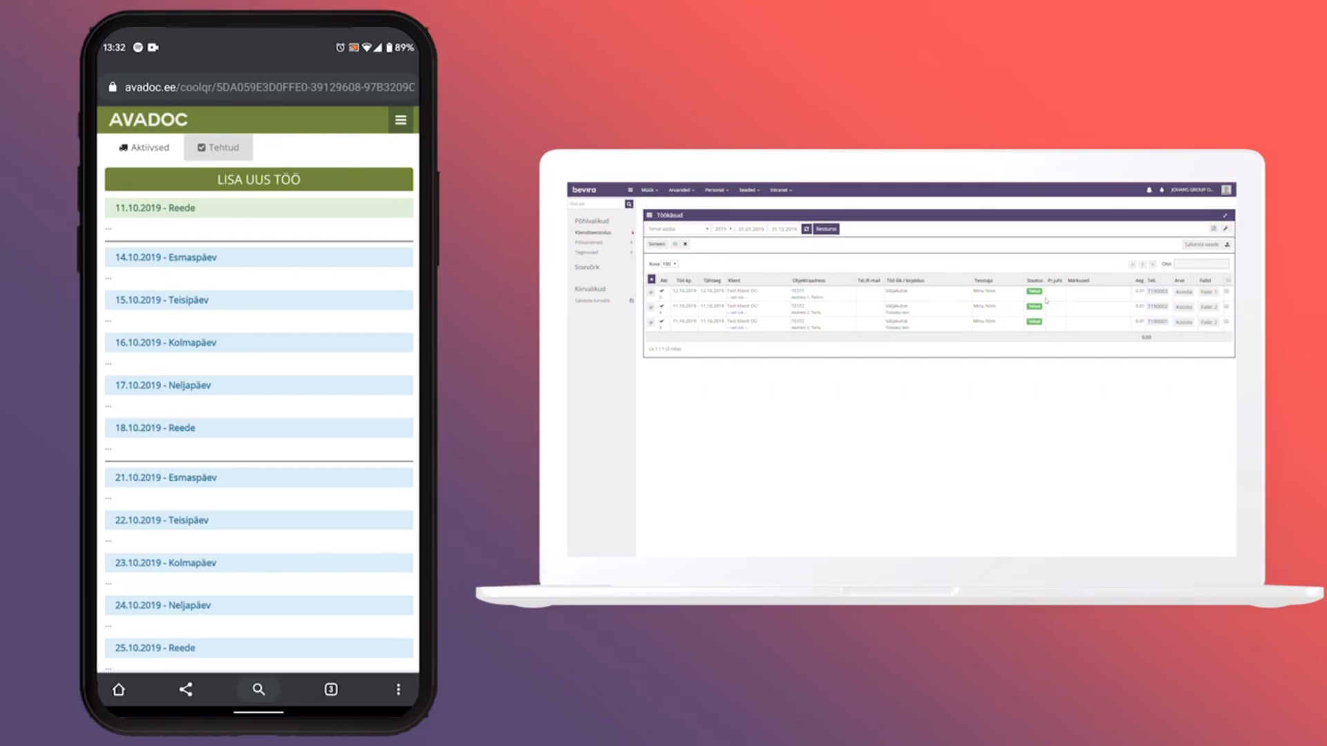 Saab ühe klikiga luua töökäske töö teostajatele nutiseadmesse.
